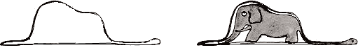 [어린왕자]에서 중절모와 코끼리를 삼킨 보아뱀 그림이 나온다. 사실 정답이 있는 것이 아니다. 어느것이 되어도 상관이 없다.
