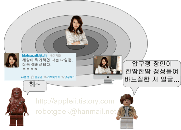 누군가의 존재는 어떻게 느낄 수 있을까? 직접 만나서 느끼는 방법도 있겠지만 요즘은 대부분 미디어를 통해서 느낀다. TV, 신문 , 인터넷 , 트위터, 페이스북 등등... 미디어를 통해서는 존재의 일부만 나타난다. 그리고 어떤 미디어를 통해서 노출되느냐에 따라서 느낌이 달라진다. 사진으로 보았을때와 트위터로 보았을 때의 느낌은 다르다. 미디어는 의도를 가지고 있다. 그리고 관찰자가 그 의도에 영향을 받는 정도가 다르다. 그 영향을 Susceptibility ( \(\chi_e \))라고 한다. (또는 냄비근성이라고도 한다.) 특히나 이 영향을 많이 받는 존재가 연예인이다. 연예인을 실제로 본 사람도 있겠지만 대부분은 미디어를 통해서 본다.