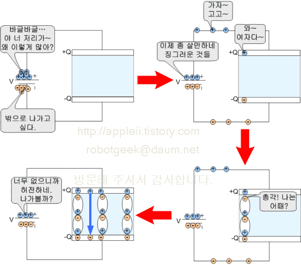 유혹이라는 관점에서 커패시터 문제를 다시 바라보면 다음과 같이 된다.