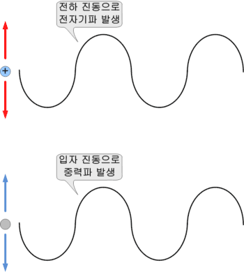 전기적 공간 뿐만이 아니라 중력 공간에서도 입자가 진동하면 중력파가 발생한다.